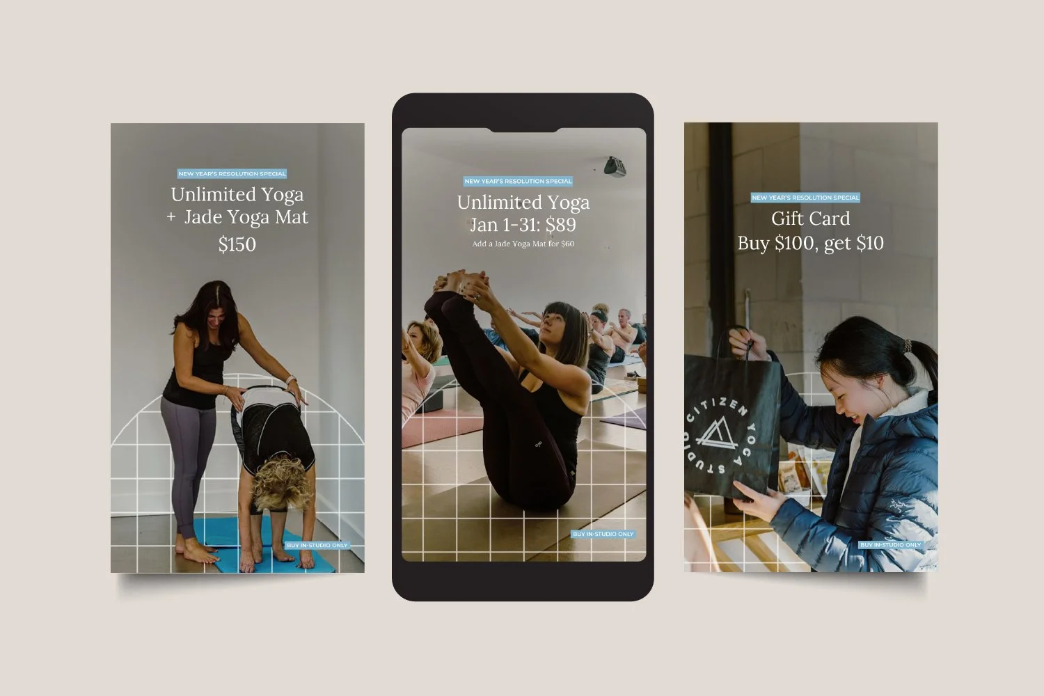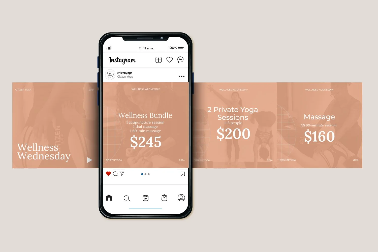 To support this mission, I designed retail pieces and Instagram carousel posts and stories that visually reflect Citizen’s values. These pieces are meant to educate, inspire, and engage the community, promoting yoga’s deeper philosophy, encouraging connection, and fostering meaningful discussions.